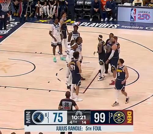 北京时间4月28日,NBA季后赛首轮G5,丹佛掘金主场以125-113击败明尼苏达森林狼,大比分扳成2-3。此役森林狼缺少了两个主力上半场他们一度落后10分,三节打完掘金已经领先到22分,末节两队多次险些爆发巨大冲突,森林狼努力追分未果。