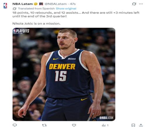 三节还没打完约基奇完成季后赛23次三双第三,魔术师第一,詹姆斯第二。(常规赛+季后赛221次三双与威少并列历史第一)